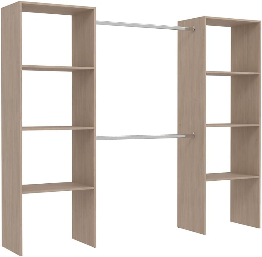 CONCEPT USINE Dressing Bois 2 Penderies + 6 Étagères Placard Garde-Robe vêtements Chaussures Elysee Bois 220 x 40 x 180cm pour Ranger Organiser Chambre Vestiaire Dressing
