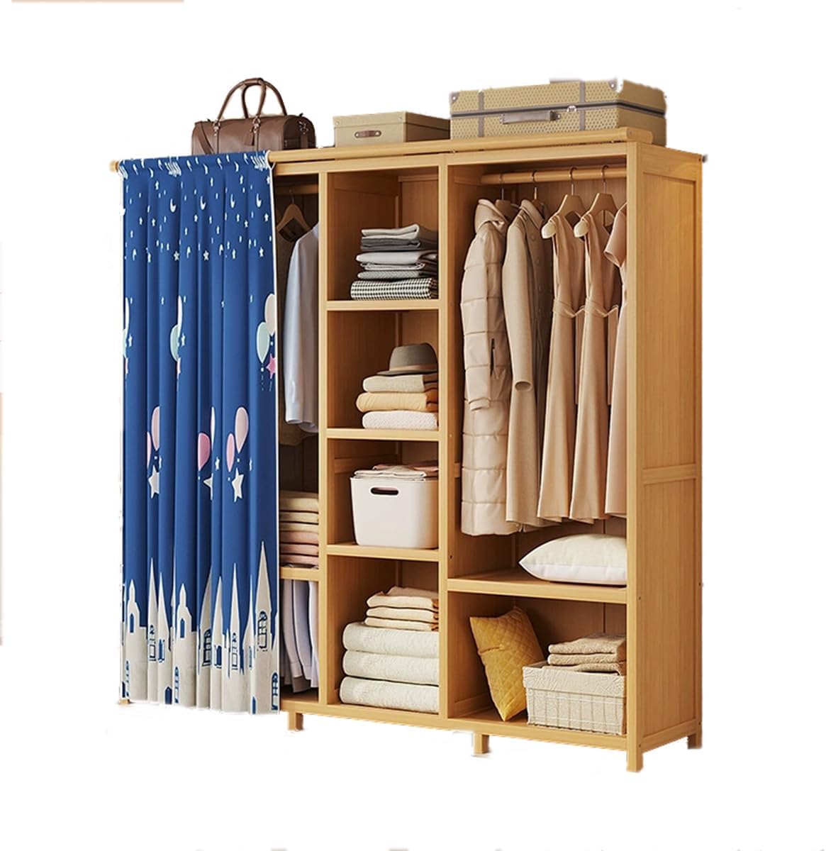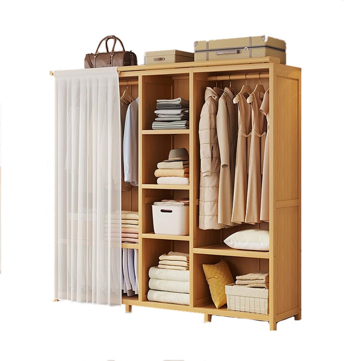 Dcbdx Penderies en Bambou 4 étagères de Rangement et Porte-Pantalons Armoire Autonome Portique Vêtement pour Salon Chambre Dressing,Beige,L 150cm