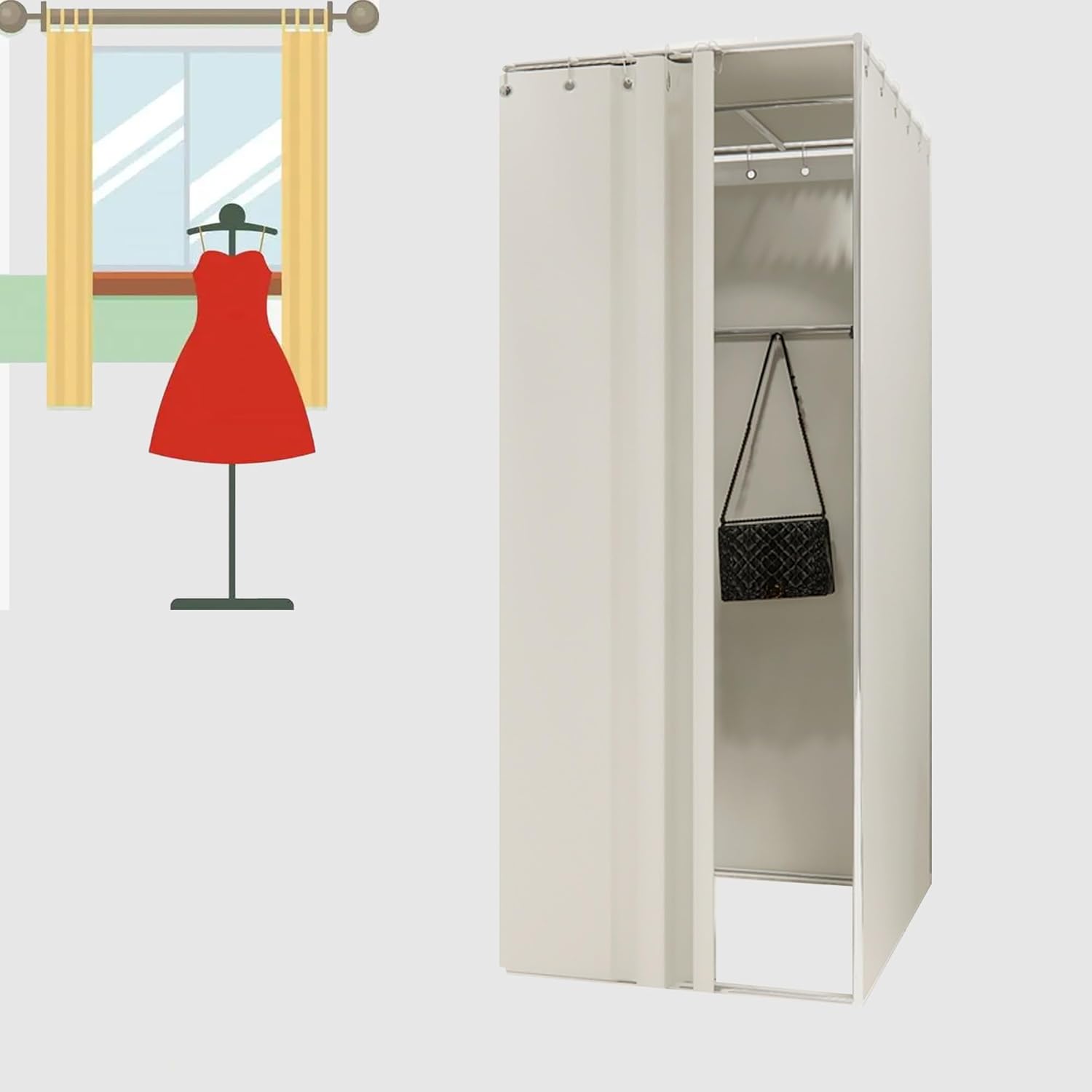 Dressing Chambre avec Rideau pour Bureau Chambre Vestiaire,Cabine Essayage,Cabine D'essayage,Magasin De Vêtements Salle D'essayage, Temporaire Privé Cabine de Vestiaire, pour Centre Commercial Color