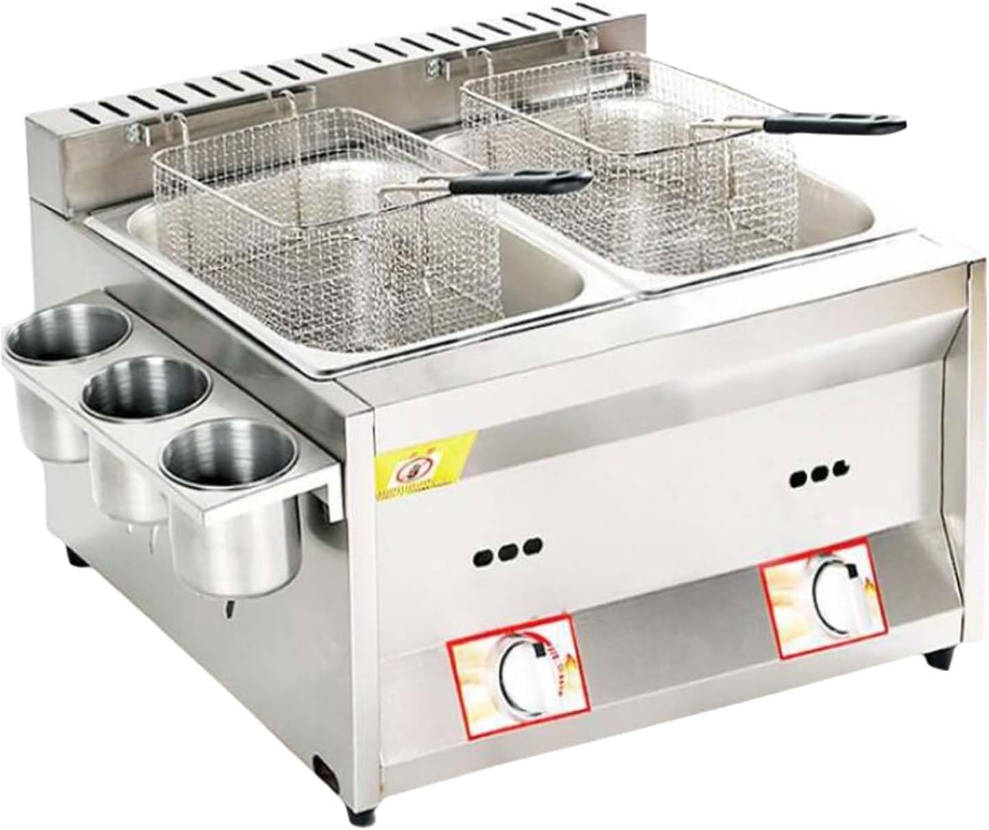 Generic Friteuse à Gaz Dual Zone, Friteuse Commerciale en Acier Inoxydable avec 2 Paniers à Friture, Réglage Manuel de la Température Facile à Nettoyer, pour Frire des Aliments Cuisiner, FRY95