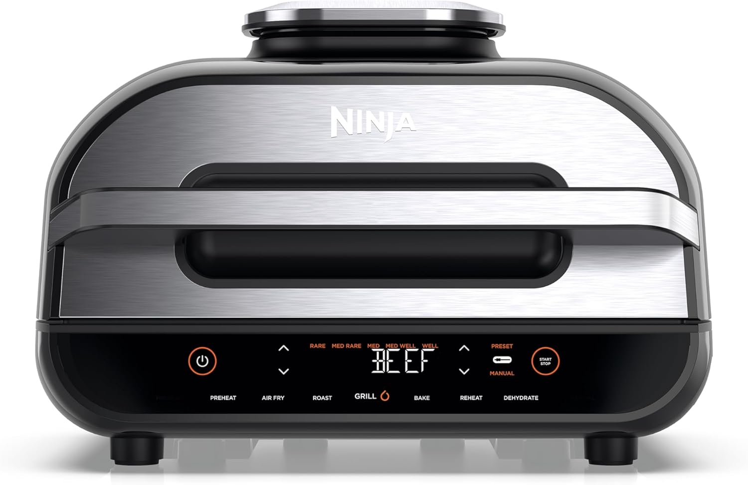 Ninja Foodi MAX Grill et Air Fryer avec Sonde de Cuisson Numérique, 5,7L, 6 Fonctions de Cuisson, Air Fry, Grille, Cuit, Rotis et bien plus, Pièces Lavables au Lave-vaisselle 2460W, Gris/Argent AG551EU