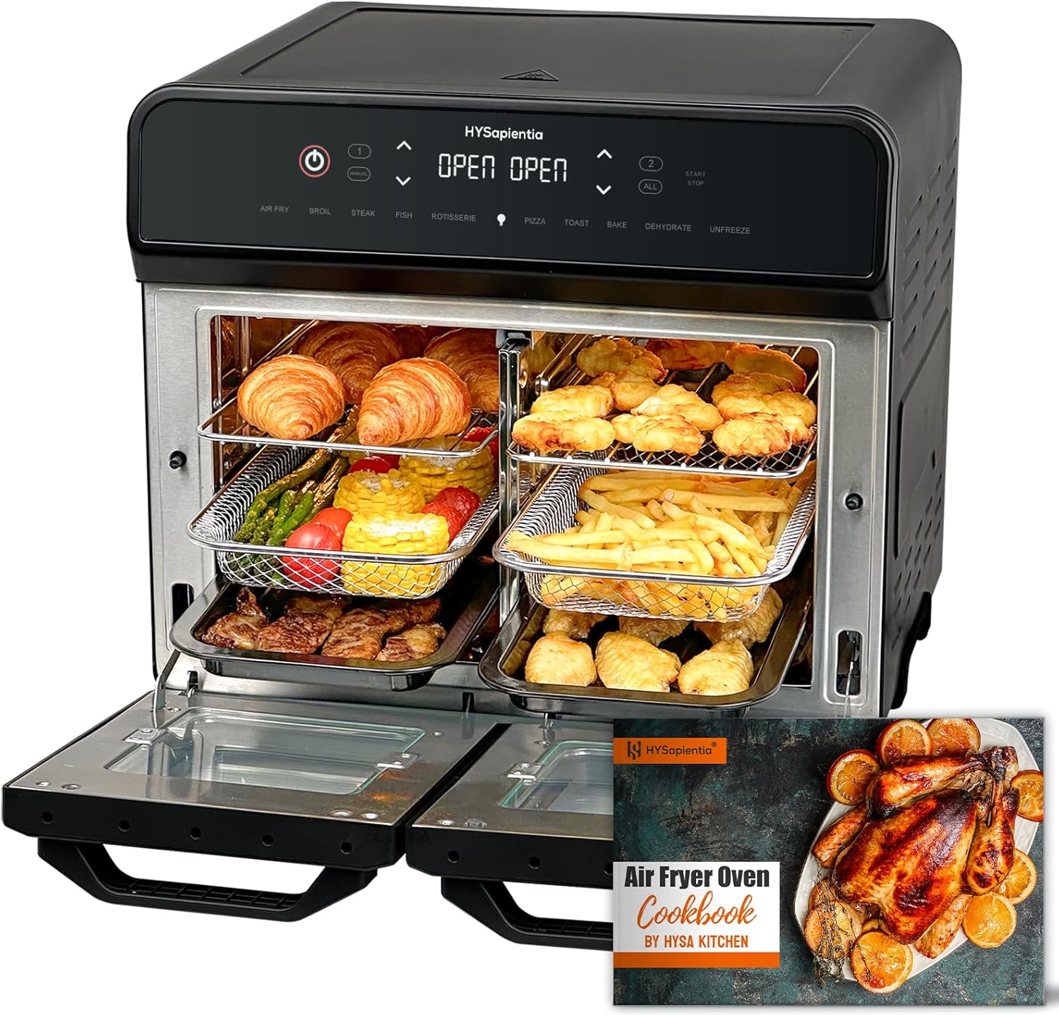 HYSapientia Four de 22 litres, Friteuse à air chaud, double panier, Friteuse à air chaud, 2400 W, 2 paniers en acier inoxydable, 10 fonctions, double température, divisée en deux gammes de serrage