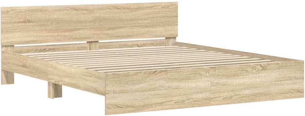 vidaXL Cadre de Lit avec Tête de Lit, Lit Double avec Sommier à Lattes, Lit Adulte, Meuble de Chambre à Coucher, Moderne, Chêne Sonoma 180x200 cm