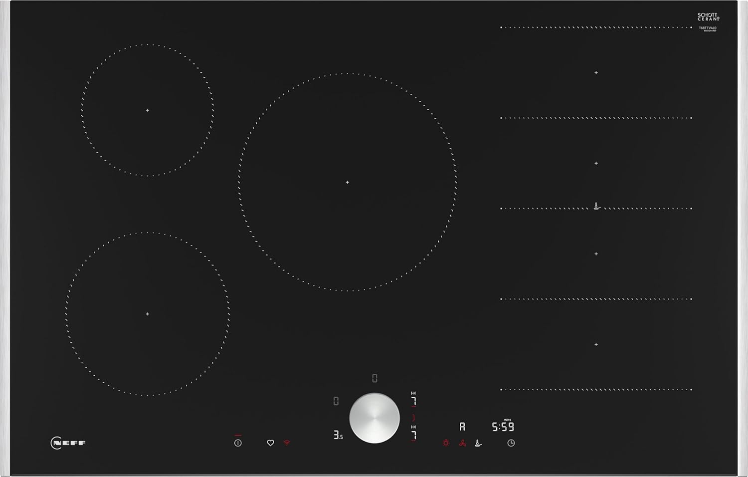 NEFF T68TTV4L0 N90 Plaque de cuisson vitrocéramique autonome 80 cm de large, Twist Pad, Flex Induction, Home Connect, Smart Hood Automatic, Encastrable, Noir