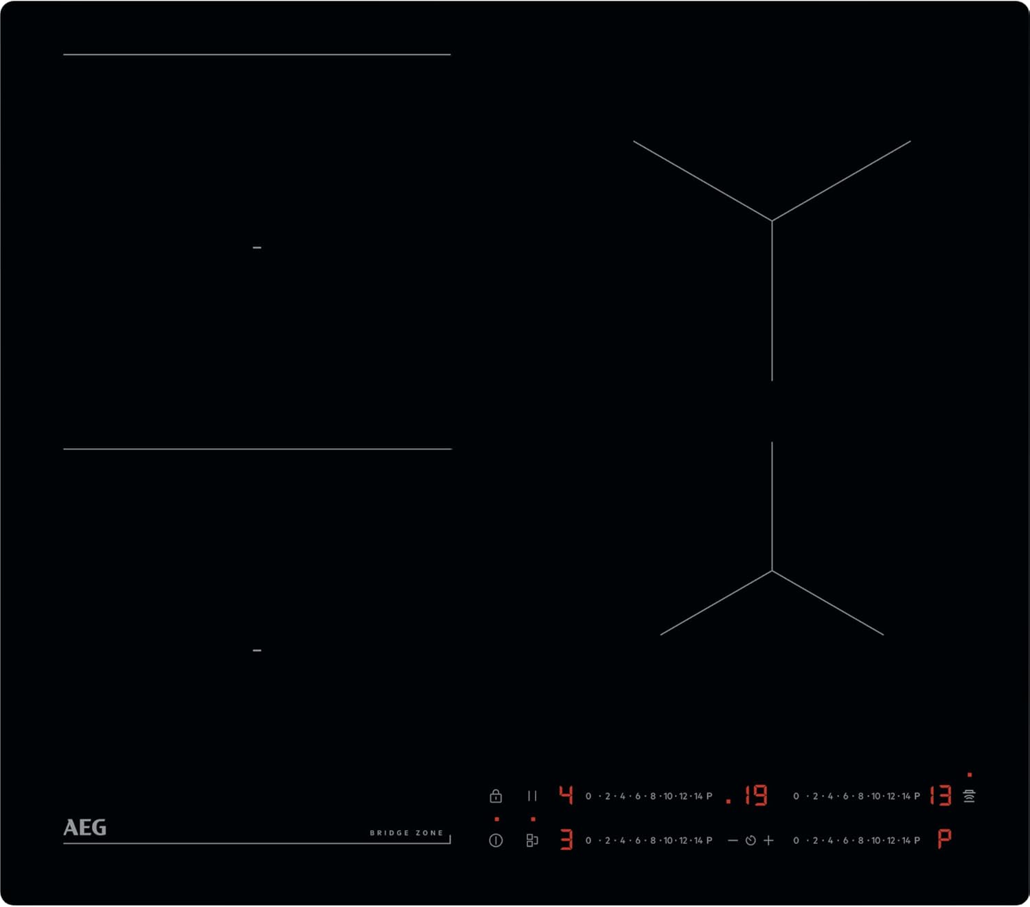 AEG Table de cuisson à induction série 6000, 4 brûleurs céramiques, fonction pont, zones de cuisson flexibles, PowerBoost, Hob2Hood, contrôle tactile, protection enfant, TO64IB00IB, 60 cm