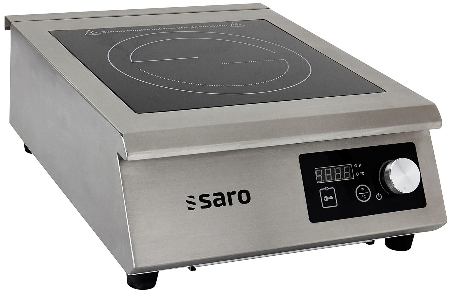 Saro - Lilly Plaque à Induction, 1 Zone de Cuisson, pour Casseroles jusqu'à diamètre 34 cm, 10 Niveaux de Température, Écran Tactile et Bouton, 5 kW, 400 V