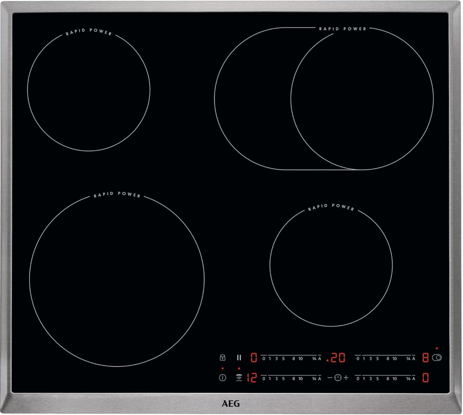 AEG hk654850 x B Plaque Électrique/Verre Céramique/57,6 cm/Rapid Power Zones de Cuisson/Acier inoxydable
