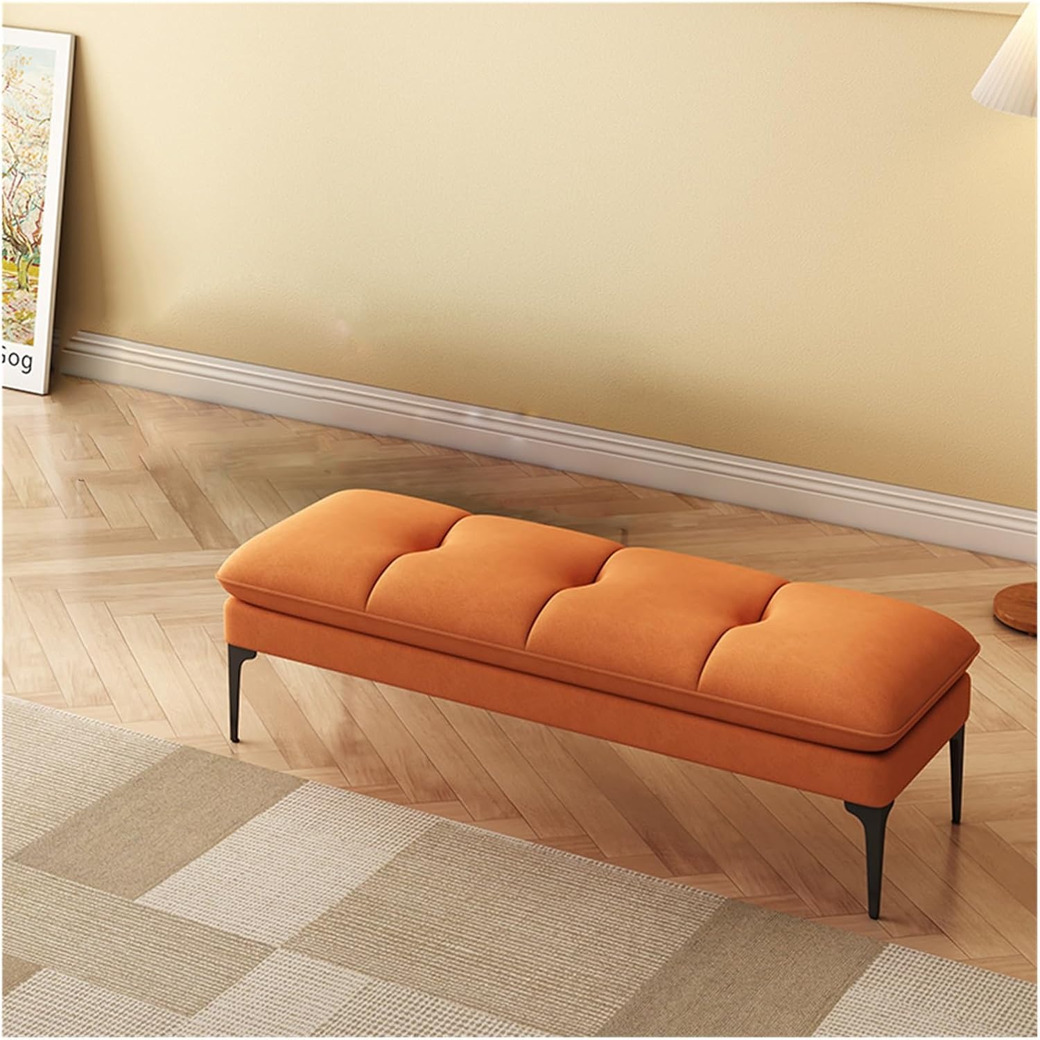 Moderne Bancs de Chambre rembourrés, Tabouret Repose-Pieds avec Pieds en métal for entrée, Salle à Manger, Coucher, Bout lit Bancs Bout de lit Orange,100 x 40 x 40cm