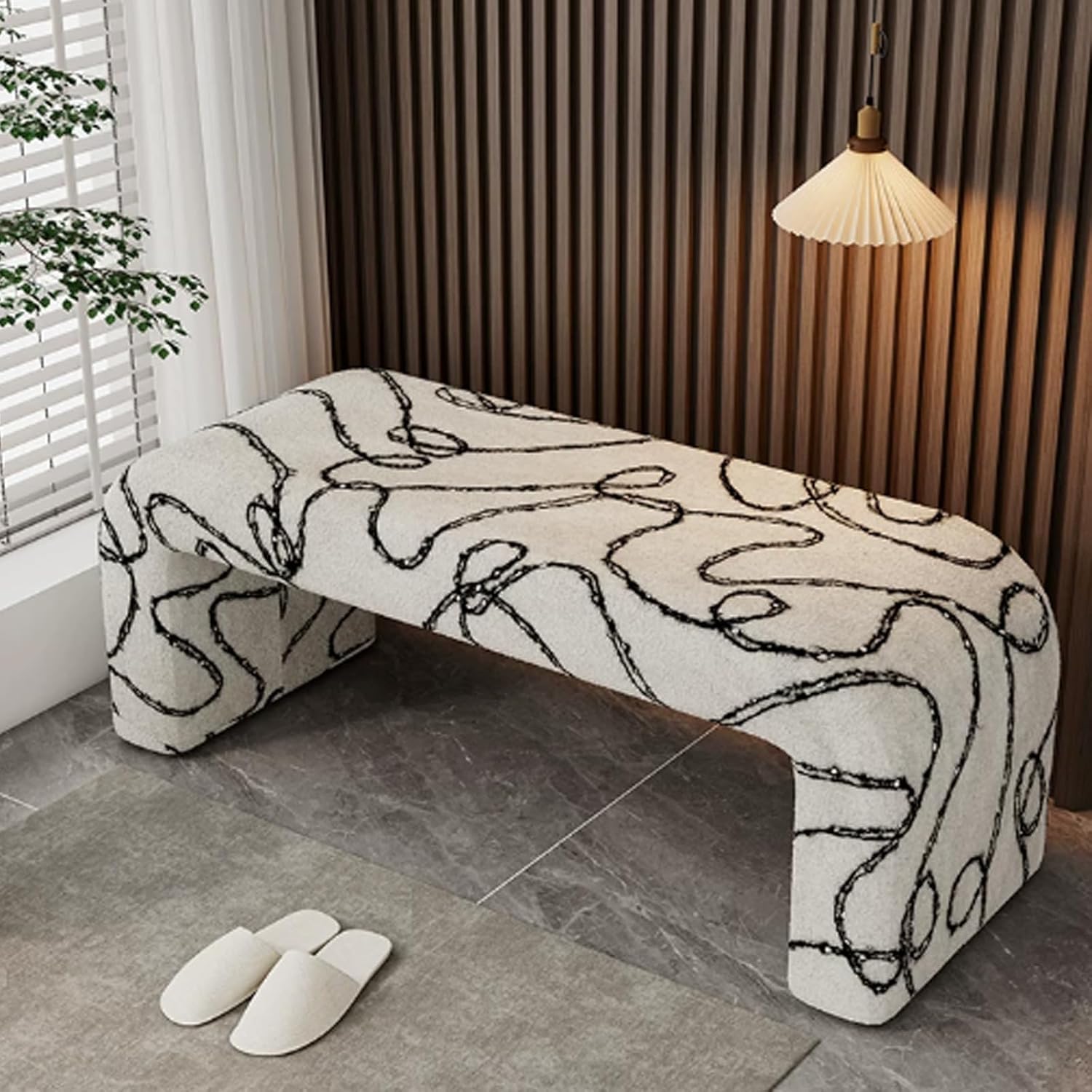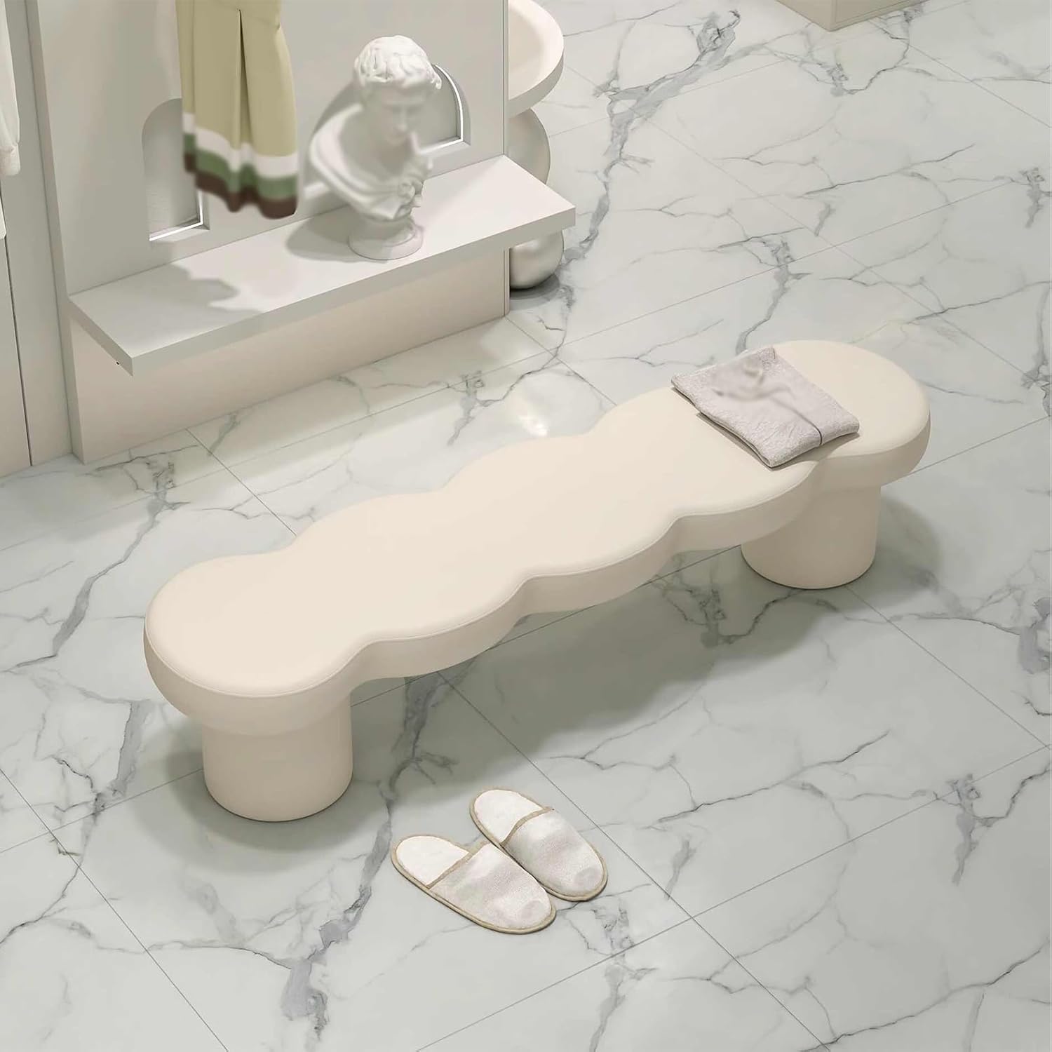 Dexinhdh Banc D'entrée, Banc De Bout De Lit avec Cadre en Bois Massif, Tabouret Ondulé Créatif avec Coussin Rembourré, Bancs À Langer pour Entrée, Salon, Chambre À Coucher, Bureau White,80cm