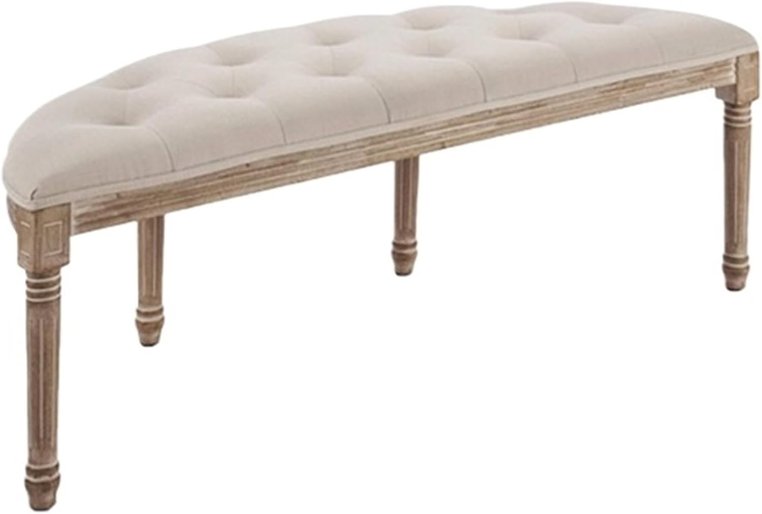 JingNian Banc D'entrée Demi-Cercle Vintage Capitonné, Banc Rembourré en Tissu Beige avec Pieds en Bois Sculpté, Banc De Bout De Lit/entrée/Salon, Confortable Et Élégant