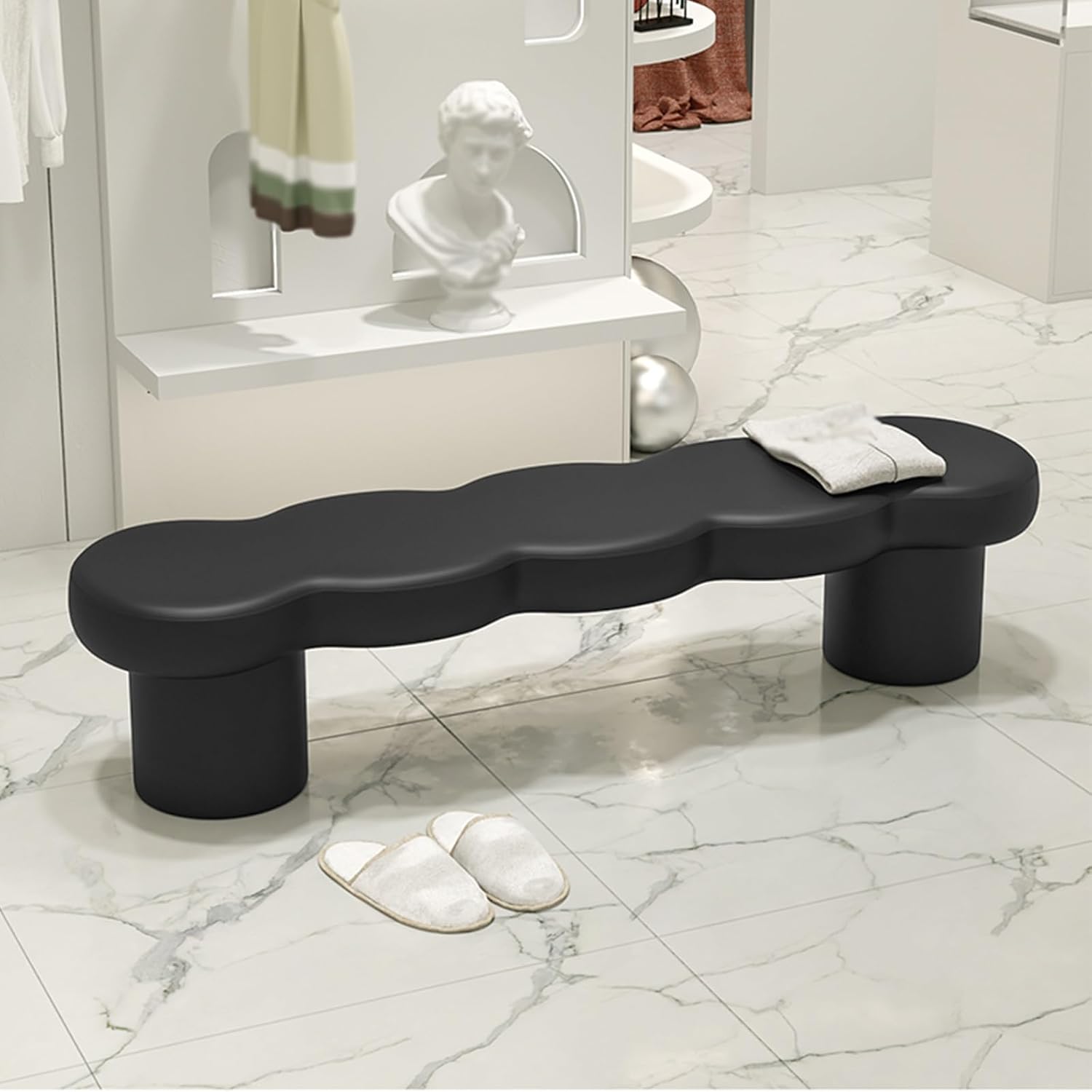 Dexinhdh Banc D'entrée, Banc De Bout De Lit avec Cadre en Bois Massif, Tabouret Ondulé Créatif avec Coussin Rembourré, Bancs À Langer pour Entrée, Salon, Chambre À Coucher, Bureau Black,80cm
