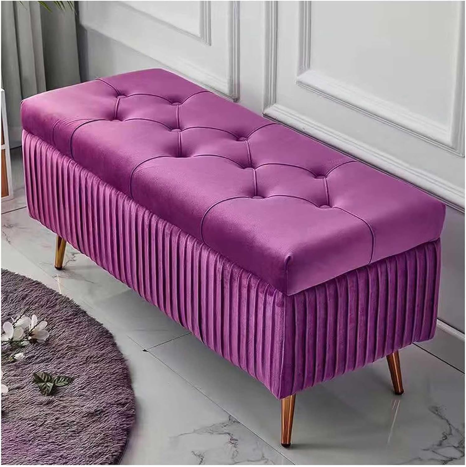 Rangement Banc de Rangement Bout de Lit Pouf Lit Pouf Chambre Banc a Chaussure Ottomane Repose-Pieds en Velours, Banc à Chaussures d'entrée,Violet,24x16x18in