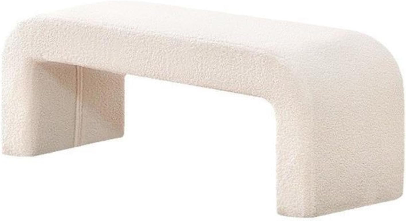 Banc ottoman rembourré en sherpa pelucheux moderne blanc crème pour chambre à coucher, salon, entrée, petit banc élégant pour bout de lit, coiffeuse et décoration d'intérieur