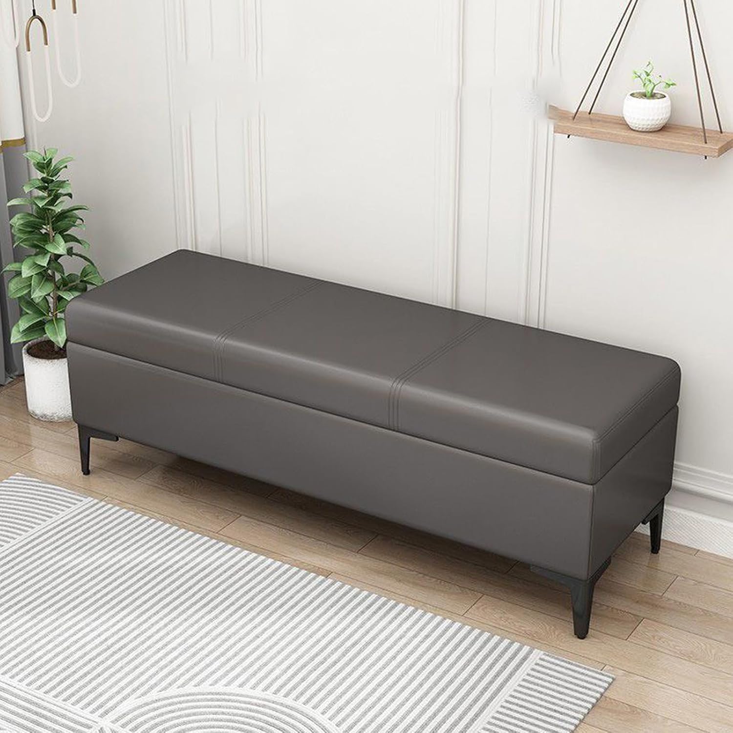 RUYICZB Banc Ottoman en Cuir avec Rangement, Banc De Bout De Lit avec Pieds en Métal, Tabouret De Rangement pour Entrée avec Couvercle Rabattable, Long Tabouret pour Canapé,Dark Gray,80cm