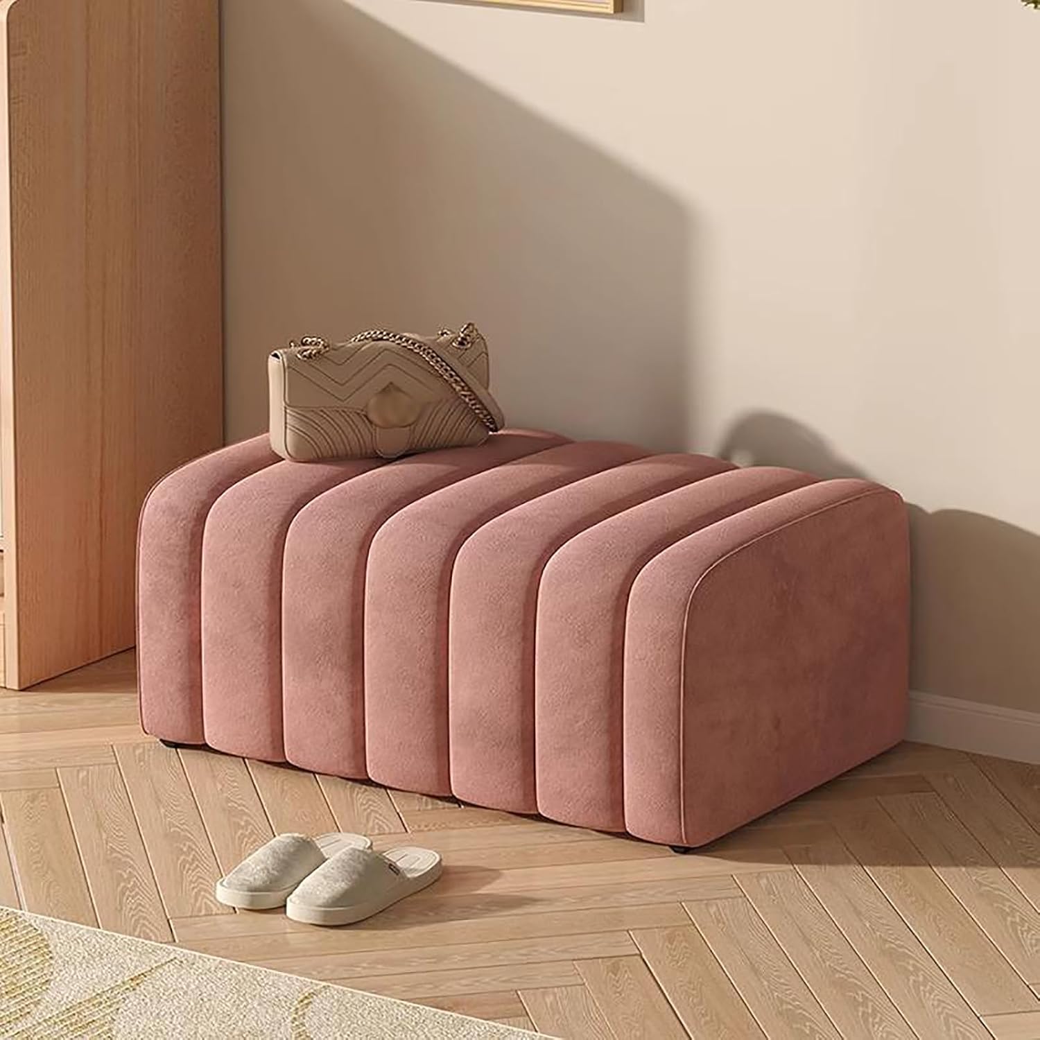 Banc en velours pour bout de lit, banc à chaussures en bois massif, repose-pieds doux pour chambre à coucher, salon, couloir, entrée, dressing, magasin 80 x 40 x 40 cm, rose
