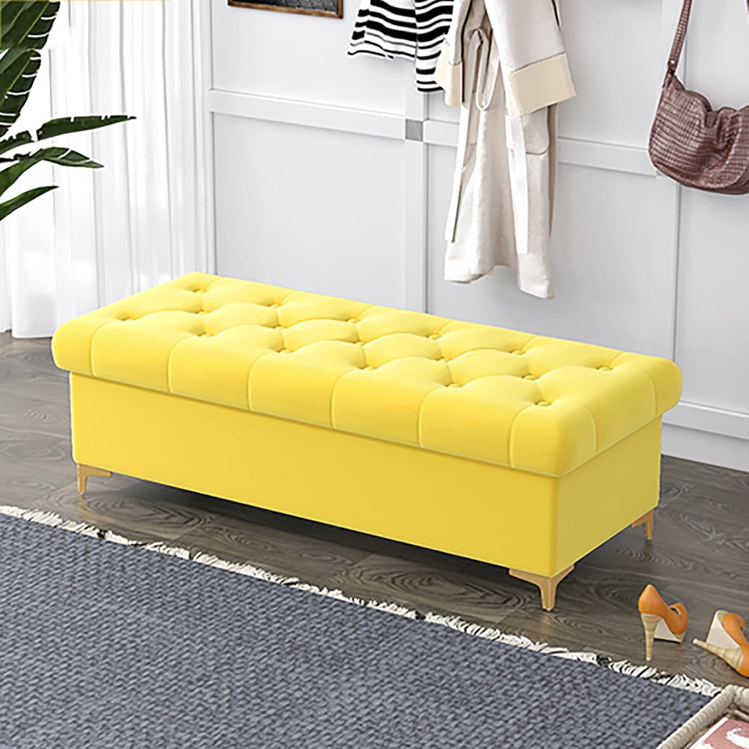 Banc ottomane de luxe en velours avec rangement rembourré moderne pour chambre à coucher et salon, bout de lit, jaune, 120 x 40 x 40 cm