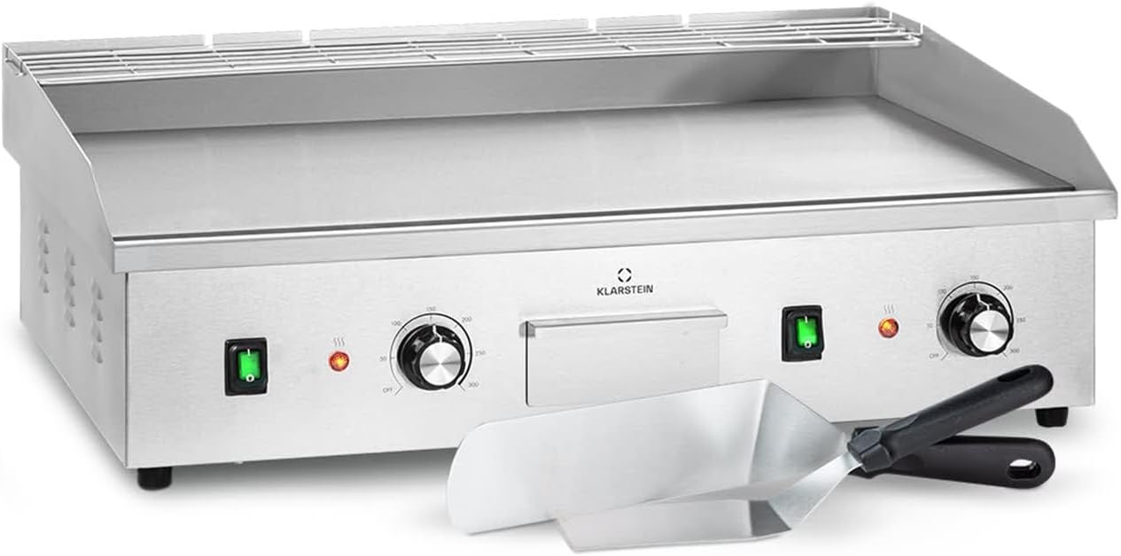 Klarstein Barbecue Electrique de Table, Plancha Electrique Exterieur, Grill Electrique Antiadhésive Amovible, Affichage LED et 2 Spatules, Acier Inoxydable pour Camping et Restaurant, 200W Argent