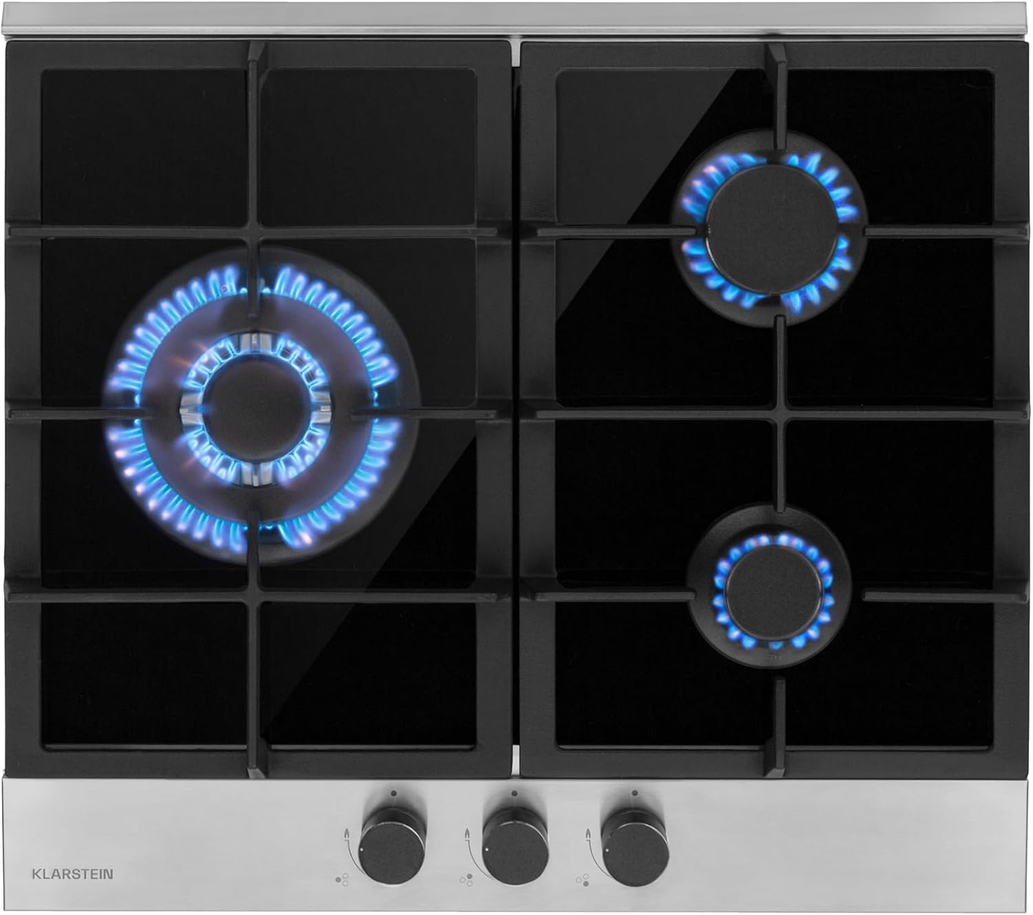 Klarstein Plaque de Cuisson Gaz 3 Feux, Table de Cuisson à Gaz à 3 Brûleurs, 6.2 kW, Piano Cuisine Gaz Encastrable en Acier Inoxydable