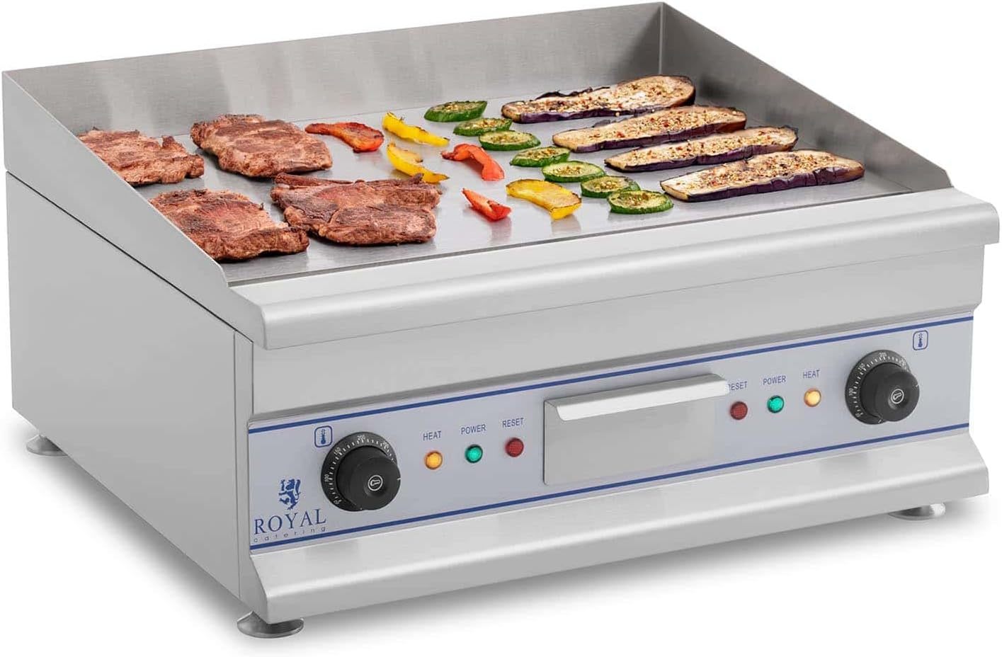 Royal Catering Plancha Electrique RCG 60 longueur 60 cm, 2 x 3.200 W, lisse, protection antiéclaboussures, dispositif d'écoulement