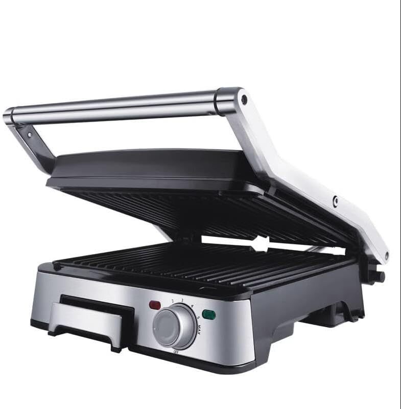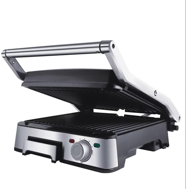 RUYICZB Grill Panini Professionnel, Plaque Rainuree Fonte Revetement Ceramique Température Réglable Et Ouverture À 180°, Machine À Sandwich Multifonctions, Poisson, Croque Monsieur